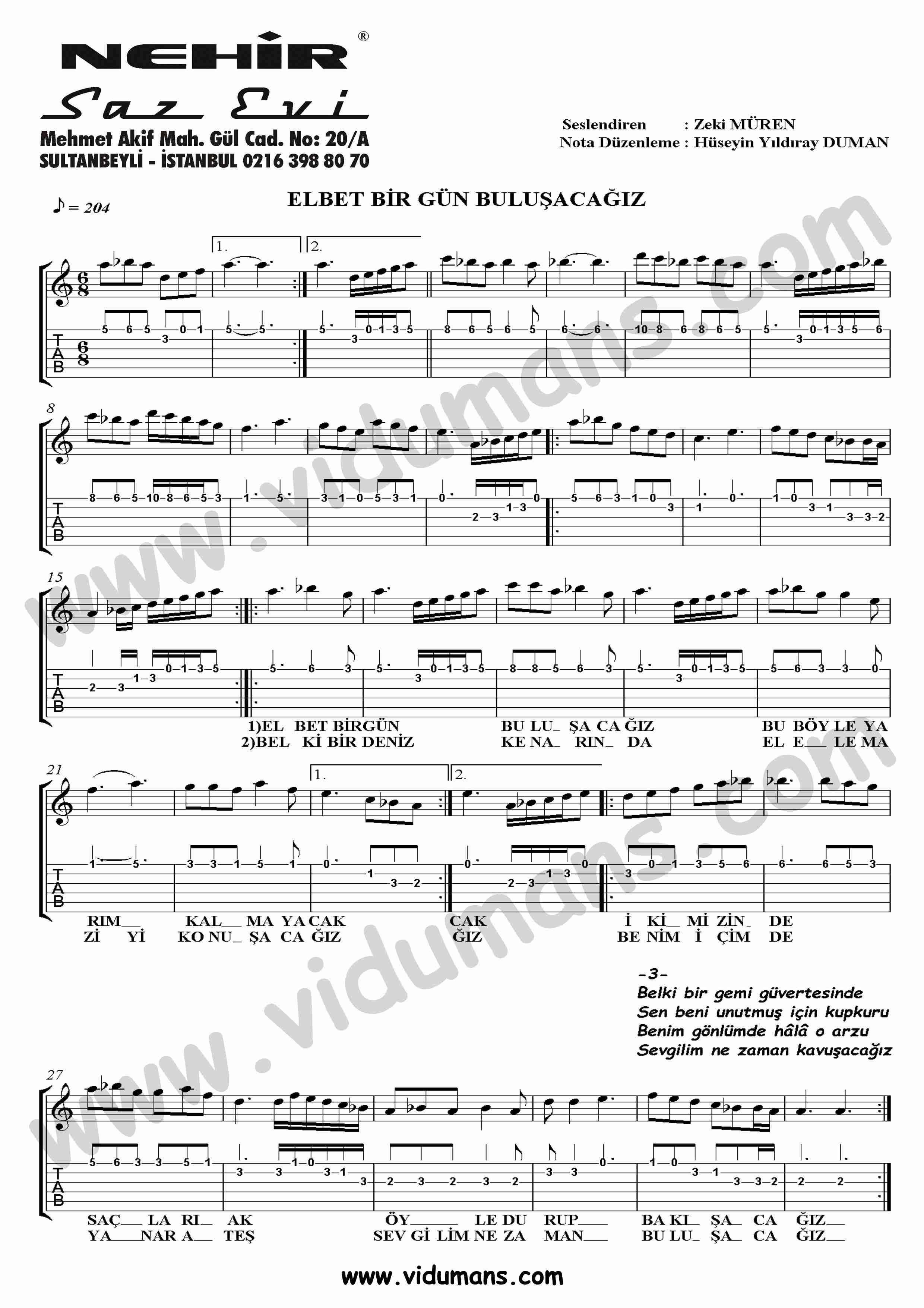 Elbet Bir Gün Buluşacağız – Gitar Tab-Solo Notaları